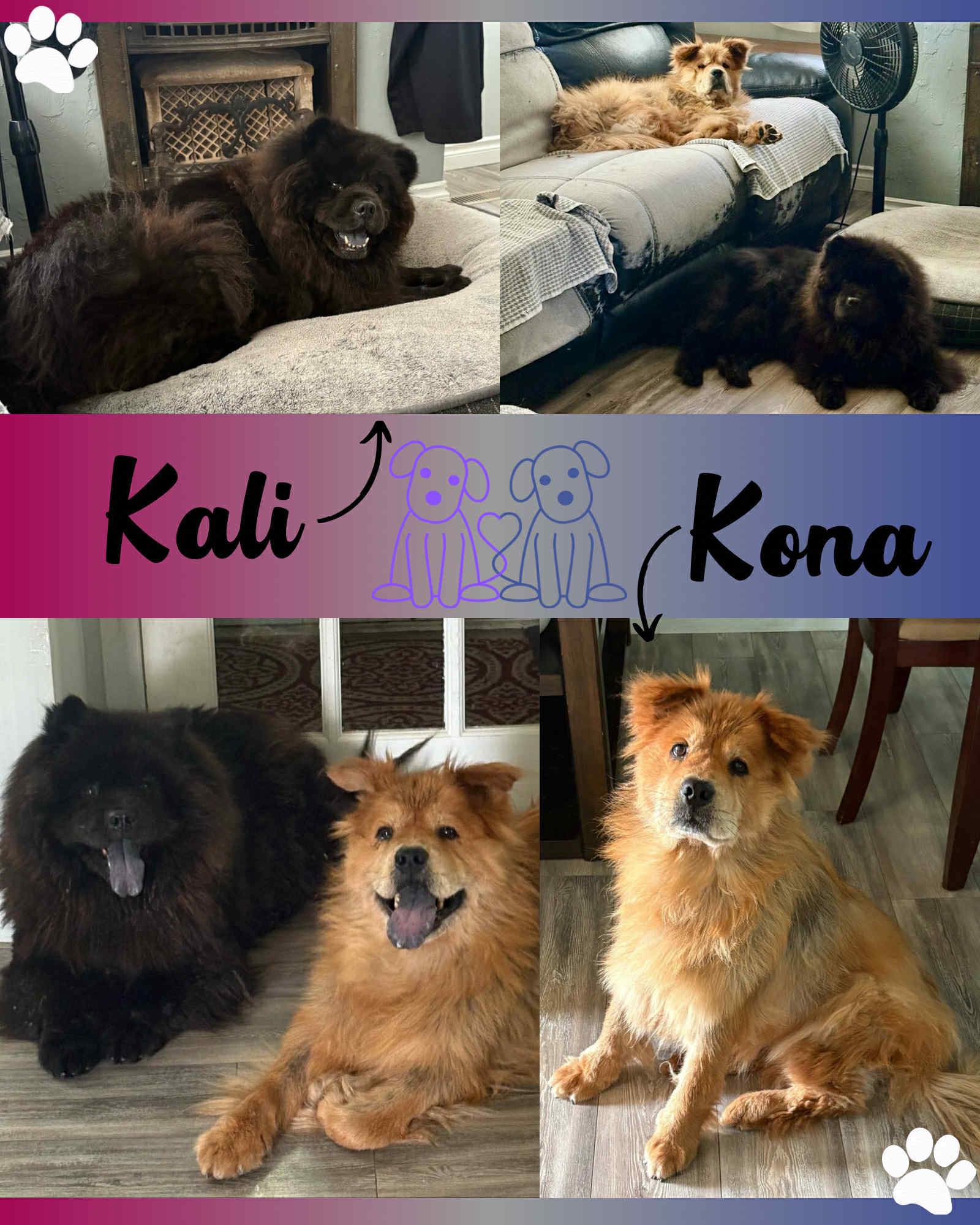 These two gentle souls are looking for a calm, loving home with patient, Chow-savvy adopters who understand their unique personalities. A quiet home with a secure yard and a predictable routine would be perfect. Kona is entering his golden years, so a home with minimal stairs is ideal. No young children, please — these two prefer a peaceful environment where they can relax and feel safe.